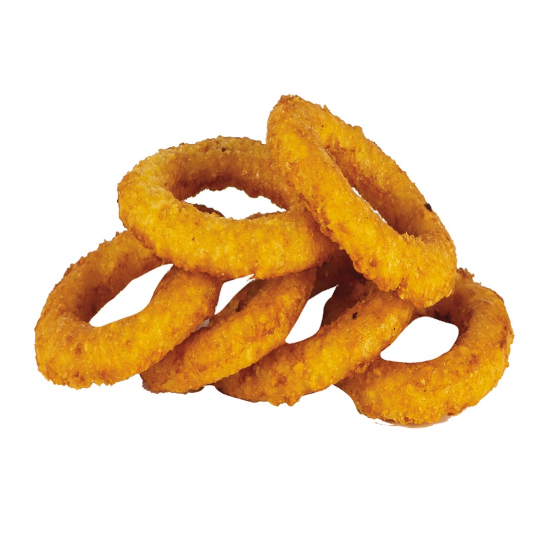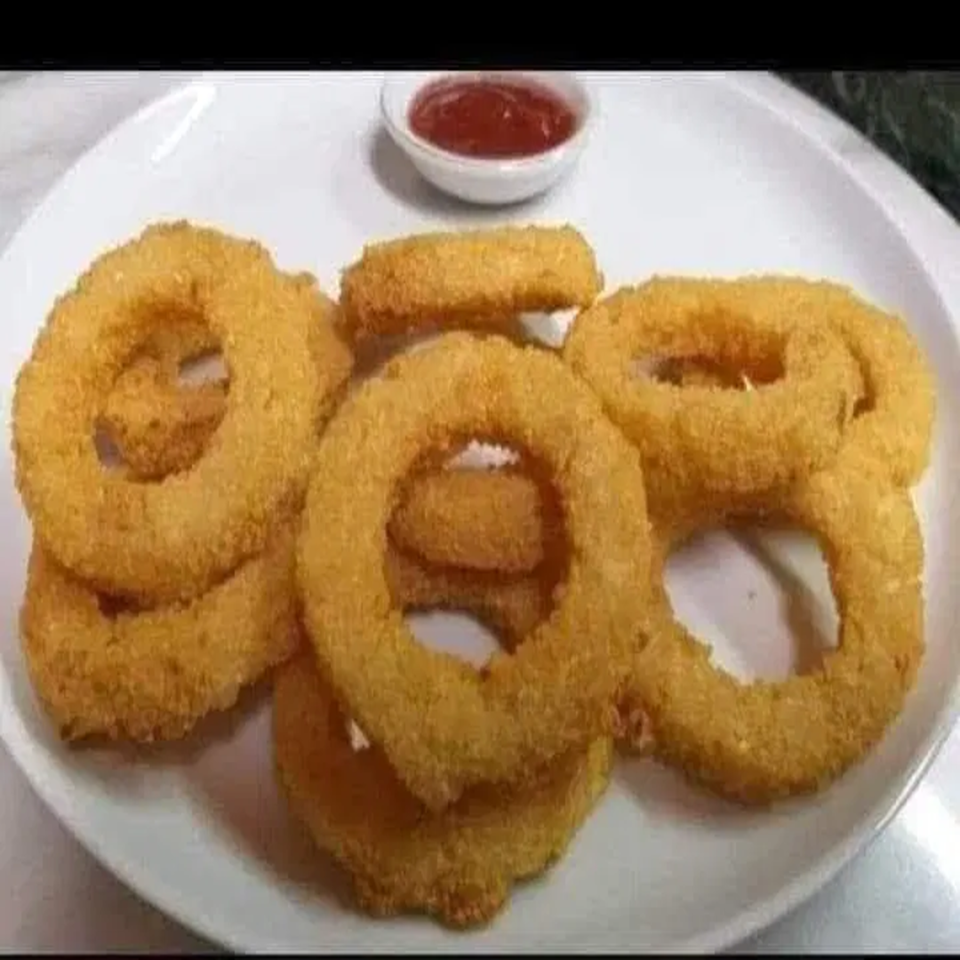 حلقات بصل مقرمشة ولذيذة، جاهزة للتحمير والتقديم.